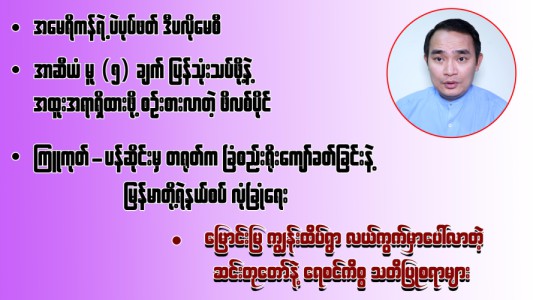 လွှတ်တော်သုံးရပ် ခေါ်ယူမှုနဲ့ ဘာတွေ ကနဦးလုပ်ကြမလဲ၊ တရုတ်ကျားဖြန့်ခေါ် အွန်လိုင်းလိမ်လည်မှုအတွက် အမေရိကန် FBI လာမယ်လို့ ဆို၊ AA နဲ့ တပ်မတော် ဆွေးနွေးဖို့ ဘယ်သူက ပိုဆန္ဒရှိမလဲ၊ ရန်ကုန်လေထုနဲ့ YBS ဖြစ်ရပ်၊ စစ်ကိုင်း ထက်ဝန်းကျောင်းက ကျောင်းသား ၁၆၀ ကျော်ကိစ္စ (၂၄-ဝ၂-၂ဝ၂၆)
