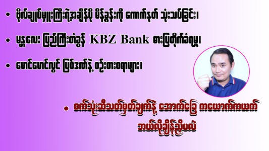 ဗိုလ်ချုပ်မှူးကြီးရဲ့အချိန်ပို မိန့်ခွန်းကို ကောက်နုတ် သုံးသပ်ခြင်း၊ မန္တလေး ပြည်ကြီးတံခွန် KBZ Bank ဓားပြတိုက်ခံရမှု၊ မောင်မောင်လွင် ပြစ်ဒဏ်နဲ့စဥ်းစားစရာများ၊ စက်သုံးဆီသတ်မှတ်ချက်နဲ့ အောက်ခြေ ကယောက်ကယက် ဘယ်လိုချိန်ညှိမလဲ(၁၃-၃-၂၀၂၆)