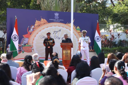 (၇၇) ကြိမ်မြောက် အိန္ဒိယသမ္မတနိုင်ငံ အမျိုးသားနေ့ အထိမ်းအမှတ် နိုင်ငံတော်အလံတင် အခမ်းအနား ရန်ကုန်မြို့တွင်ကျင်းပ
