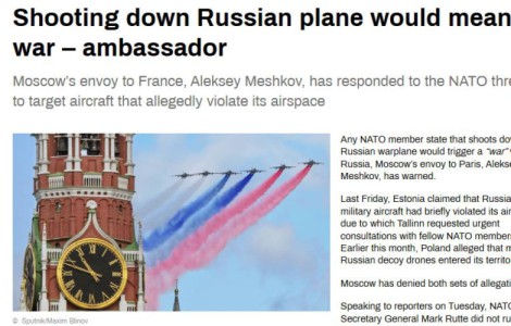 ရုရှားစစ်လေယာဉ်တွေကို ပစ်မချဖို့ နေတိုးအဖွဲ့ဝင်နိုင်ငံတွေကို ရုရှားသံအမတ်ကြီး သတိပေး