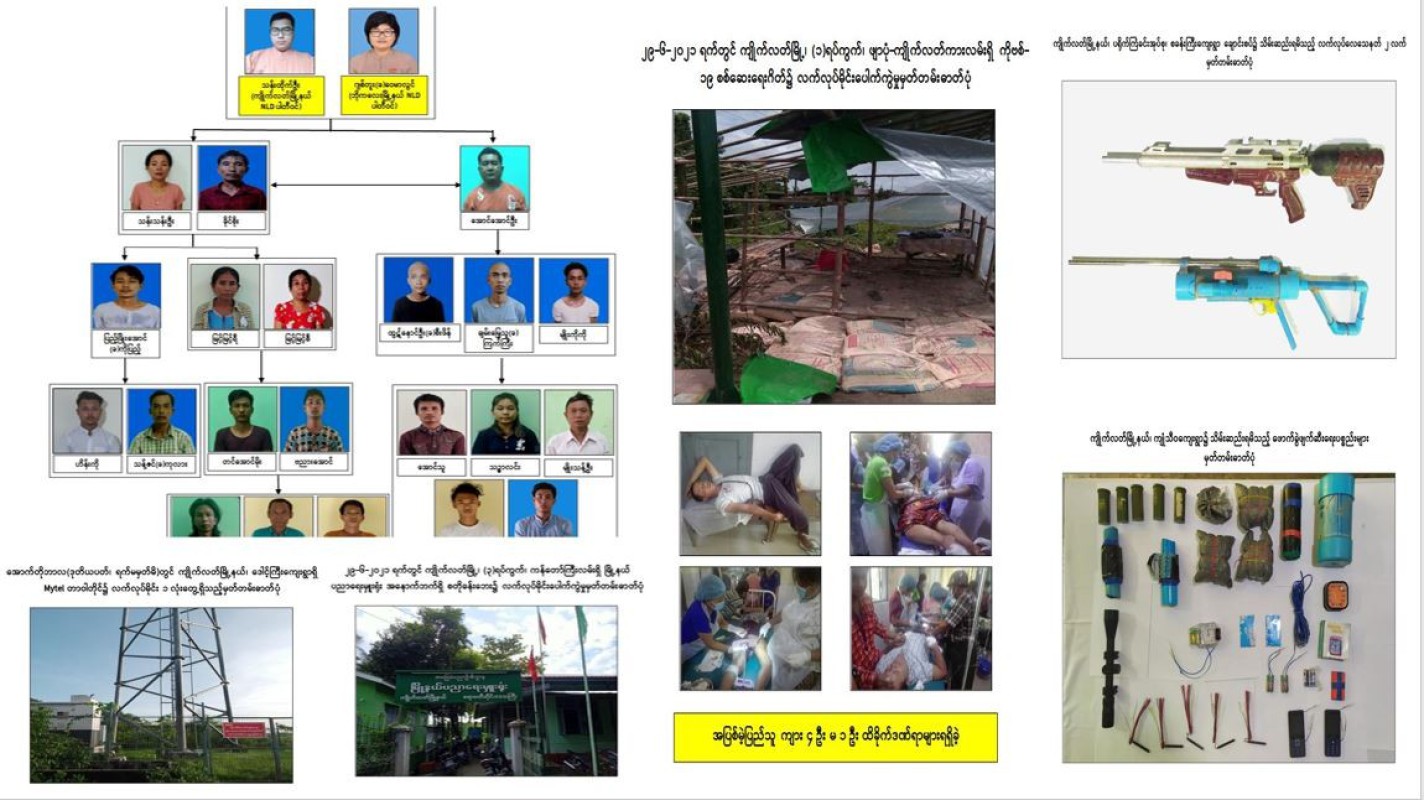 ထြဋ္ေနာင္ဦး(ခ)စီးဖိန္၏ ထြက္ဆိုခ်က္အရ ႏိုဝင္ဘာလ(၁၅)ရက္တြင္ ေဒးဒရဲၿမိဳ႕နယ္၊ က်ိဳက္လတ္ျမစ္ကမ္းအနီး၊ မိေခ်ာင္းအိုင္ေက်း႐ြာ ေခ်ာင္းဝတြင္ RETAY MOD 92 အမ်ိဳးအစား ပစၥတိုေသနတ္ (၁) လက္၊ ၎က်ည္ (၅) ေတာင့္၊ က်ည္အိမ္ (၁) ခုအား သိမ္းဆည္းရမိခဲ့ၿပီး၊ ႏိုဝင္ဘာလ(၁၆)ရက္တြင္ က်ိဳက္လတ္ၿမိဳ႕၊ (၃)ရပ္ကြက္၊ (၇)လမ္းႏွင့္ (၈)လမ္းေထာင့္ရွိ စိန္ဖုန္းေရာင္းဝယ္ေရးဆိုင္၌ သၪၨာလင္း၊ (၂၃)ႏွစ္အား ဖမ္းဆီးရမိခဲ့ေၾကာင္း ထုတ္ျပန္ခ်က္တြင္ ေရးသားထားသည္။ ဖမ္း ဆီးရမိသူျမင့္ျမင့္စီ၏ ထြက္ဆိုခ်က္အရ ႏိုဝင္ဘာလ (၁၇)ရက္တြင္ က်ိဳက္လတ္ၿမိဳ႕နယ္၊ ခမုံေက်း႐ြာ၌ ဗညားေအာင္(၂၄)ႏွစ္ႏွင့္ ဘိုကေလးၿမိဳ႕နယ္၊ သူေဌးကုန္းေက်း႐ြာ၌ တင္ေအာင္မိုး(၅၀)ႏွစ္တို႔ (၂) ဦးအား ထပ္မံဖမ္းဆီးရမိခဲ့ေၾကာင္း၊ ထြဋ္ေနာင္ဦး(ခ)စီးဖိန္ ၏ ထြက္ဆိုခ်က္အရ ႏိုဝင္ဘာလ ၁၇ ရက္ တြင္ က်ိဳက္လတ္ ၿမိဳ႕နယ္၊ က်ဳံတုံးလက္ပံေက်း႐ြာ ၌ မ်ိဳးသန႔္ဦး(၅၁)ႏွစ္အား ဖမ္းဆီးရမိခဲ့ၿပီး ႏိုဝင္ဘာလ (၁၈)ရက္တြင္ က်ဳံသီဝေက်း႐ြာရွိ ခိုင္စိုး ၏ေနအိမ္မွစႏိုက္ပါမွန္ေျပာင္း (၁) ခု၊ လက္ လုပ္မိုင္း(၂)လုံး၊ TNT ယမ္းေတာင့္(၅)ေတာင့္၊ ဒီတိုေနတာ(၅)ေခ်ာင္း ႏွင့္ အျခားဆက္စပ္ပစၥည္းမ်ားအားသိမ္းဆည္းရမိခဲ့ကာ ဖ်ာပုံၿမိဳ႕၊ (၁၈) ရပ္ကြက္၊ ဗိုလ္ျမတ္စံလမ္း၌ ေက်ာ္ေဇာဟိန္း(ခ)ေထာ္ေလး(၂၂)ႏွစ္ႏွင့္ ၿငိမ္းခ်မ္းဦး (၂၃)ႏွစ္တို႔ (၂) ဦးအား ဖမ္းဆီးႏိုင္ခဲ့ ေၾကာင္းသိရသည္။ ထြဋ္ေနာင္ဦး(ခ)စီးဖိန္၏ထြက္ဆိုခ်က္ျဖင့္ ႏိုဝင္ဘာလ(၁၉)ရက္တြင္ က်ိဳက္လတ္ၿမိဳ႕နယ္၊ ပ႐ိုက္ႀကံခင္းအုပ္စု၊ စခန္းႀကီးေက်း႐ြာေခ်ာင္းအ စပ္၌ ဆာလာအိတ္ႏွင့္ထည့္ထားေသာ လက္လုပ္ေလေသနတ္(၂)လက္ အား သိမ္းဆည္းရမိခဲ့ၿပီး ၿငိမ္းခ်မ္းဦး ၏ ထြက္ဆိုခ်က္အရ ႏိုဝင္ဘာလ (၁၉)ရက္တြင္ ဖ်ာပုံၿမိဳ႕၊ (၁)ရပ္ကြက္၊ ဓနိေတာ (၁) လမ္း၊ ဖ်ာပုံတံတားေအာက္၌ သိန္းတန္(၅၅)ႏွစ္ႏွင့္ ခင္ေဇာ္ (၄၉)ႏွစ္တို႔ ႏွစ္ဦးအားလည္း ေကာင္း၊ ထြဋ္ေနာင္ဦး (ခ)စီးဖိန္၏ထြက္ဆိုခ်က္အရ ႏိုဝင္ဘာလ(၂၁) ရက္တြင္ ဖ်ာပုံၿမိဳ႕နယ္၊ ေဒၚညိမ္းအုပ္စု၊ ဗန္ဒါပင္ေက်း႐ြာ၌ ခ်စ္ကိုကို (၃ဝ)ႏွစ္အားလည္းေကာင္း ထပ္မံဖမ္းဆီးရမိခဲ့သည္ဟုဆိုသည္။ ဖမ္း ဆီးရမိသူမ်ား၏ထြက္ဆိုခ်က္အရ ဧၿပီလ (၁၂)ရက္မွ ေမလ (၂ဝ)ရက္အထိ ထြဋ္ေနာင္ဦး(ခ)စီးဖိန္၊ ခ်စ္ကိုကို၊ ဖမ္းဆီးရန္က်န္ေသာေနႏိုင္(ခ) ကိုသက္၊ ေကာင္းထက္လင္း၊ ေနမ်ိဳးေအာင္၊ ဆန္းလင္း(ခ)ဆန္းလင္းေအာင္ႏွင့္ ေအာင္ေအာင္ေက်ာ္ တို႔သည္ မိုးညႇင္းၿမိဳ႕နယ္ရွိ KIA တပ္မ ဟာ(၈)တြင္ ေဖာက္ခြဲေရးသင္တန္းတက္ေရာက္ခဲ့ေၾကာင္း၊ သင္တန္း ဆင္းၿပီးေနာက္ ထြဋ္ေနာင္ဦး(ခ)စီးဖိန္၊ ေနႏိုင္(ခ)ကိုသက္ႏွင့္ ဆန္းလင္း(ခ)ဆန္းလင္းေအာင္တို႔သည္ ဇူလိုင္လ (၂ဝ)ရက္ခန႔္တြင္ ေဖာက္ခြဲေရး ဆင့္ပြားသင္တန္း အမွတ္စဥ္(၁)အားဖမ္းဆီးရန္က်န္ တရားခံဆန္ဇာ၊ ဗလႀကီး၊ လျပ