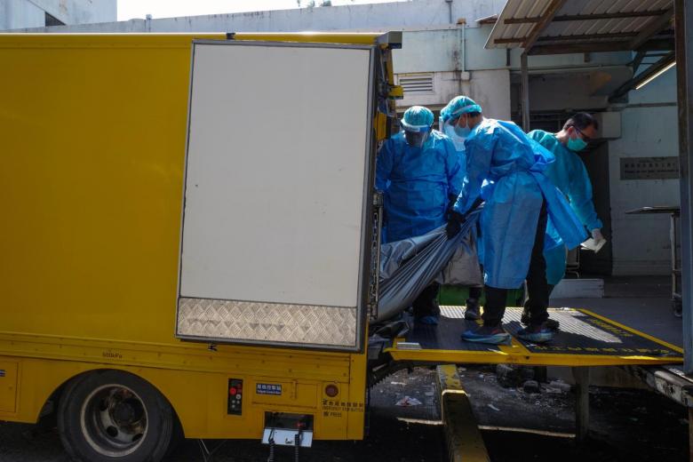 ဟောင်ကောင်မှာ အဆိုးရွားဆုံး Covid-19 ကူးစက်မှု လှိုင်းလုံးကြီးကြား ကပ်ရောဂါ အစောပိုင်းကာလကဲ့သို့ လူသေဆုံးမှု များပြားနေတာကြောင့် ရေခဲတိုက်များမှာ အလောင်းများကို သိမ်းဆည်းဖို့ မိုဘိုင်းရေခဲသေတ္တာများကို ဖြန့်ကျက်ချထားပြီး ကူးစက်ရောဂါကို တိုက်ဖျက်လျက်ရှိနေပါတယ်။