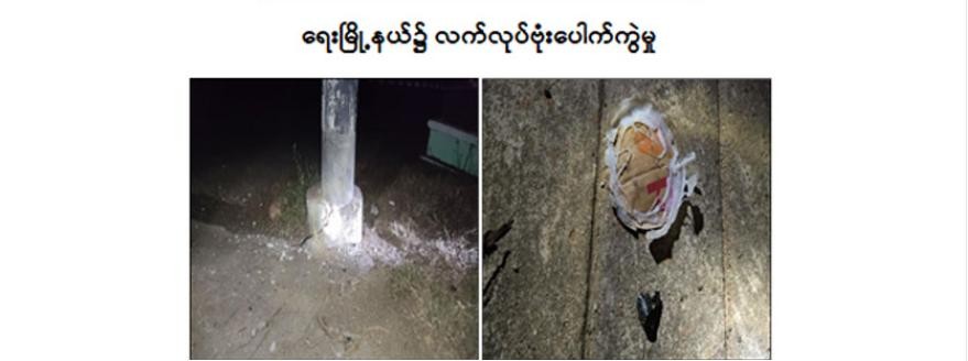 ထို႔ျပင္ ဇန္နဝါရီလ(၂၅)ရက္၊ နံနက္(၄)နာရီခြဲ အခ်ိန္တြင္ မြန္ျပည္နယ္၊ ေရးၿမိဳ႕နယ္ ၊ ရန္မ်ိဳးေအာင္ရပ္ကြက္ရွိ ၿမိဳ႕နယ္ပညာေရးမႉး႐ုံးေရွ႕တြင္ လက္လုပ္မိုင္းတစ္လုံးေပါက္ကြဲခဲ့ေၾကာင္း ျမန္မာႏိုင္ငံရဲတပ္ဖြဲ႕ထံမွသတင္းရရွိသည္။