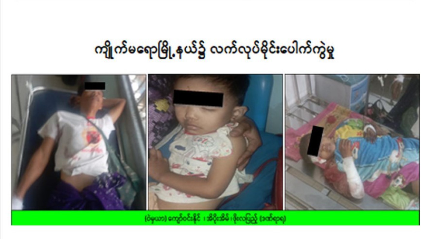 လက်လုပ်မိုင်းပေါက်ကွဲမှုကြောင့် အသက် (၂)နှစ်နှင့် (၉)နှစ်အရွယ် ကလေးငယ်နှစ်ဦးထိခိုက်ဒဏ်ရာရရှိမှု ကျိုက်မရောမြို့၌ဖြစ်ပွား