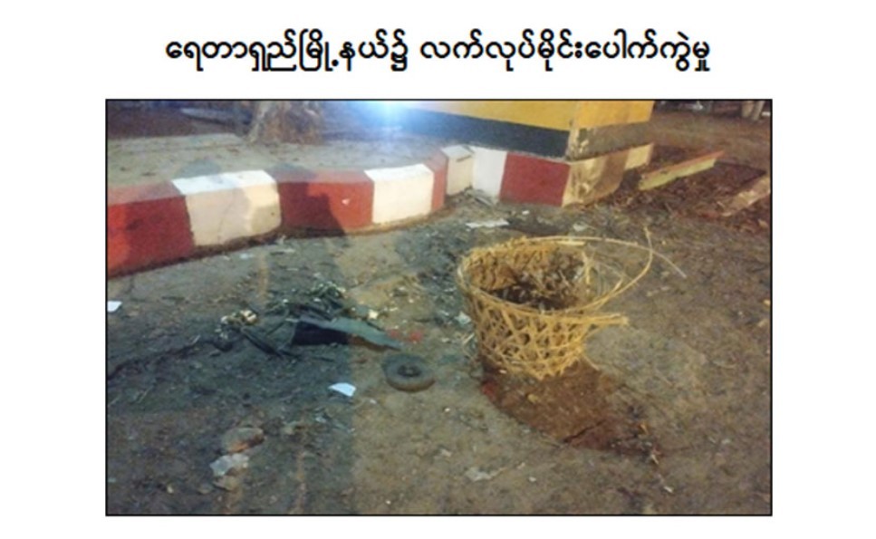 အလားတူ ပဲခူးတိုင်း၊ ရေတာရှည်မြို့နယ်တွင် အမှိုက်တောင်းအတွင်း၌ လက်လုပ်မိုင်းတစ်လုံးပေါက်ကွဲခဲ့ကြောင်း သိရသည်။