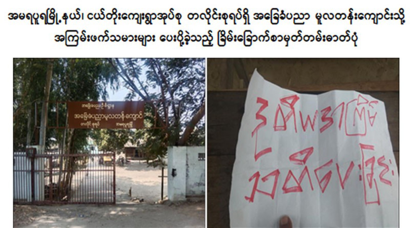 A primary school in Amarapura Township, Mandalay Region received a threatening letter sent by the #terrorist #PDF on February 2 at an estimated 1 pm, according to Myanmar Police Force.