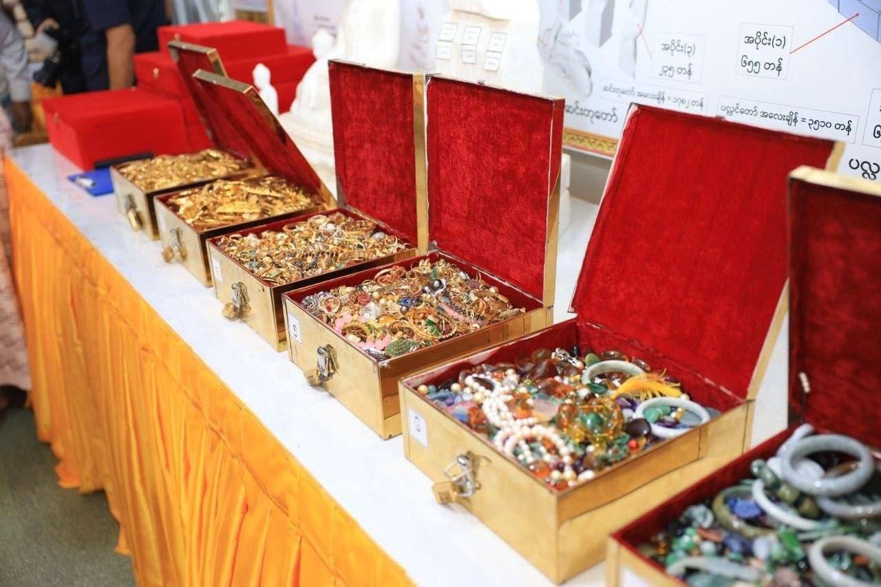 အဆိုပါ ဌာပနာတော်သွင်းလှူ ပူဇော်ရာတွင် အလှူရှင်များ စုပေါင်းလှူဒါန်းထားသည့် ရွှေထည် (၁ဝ၄) ကျပ်သား ၆ ပဲ ၃ ရွေး၊ ကျောက်မျက်ရတနာပါရွှေထည်ပစ္စည်း (၂ဝဝ) ကျပ်သား ၁ ပဲ ၁ ရွေး၊ ကျောက်မျိုးစုံ (၃) ကီလိုဂရမ် အပါအဝင် ဗုဒ္ဓမြတ်စွာဘုရား၏ ဇာတာတော်များ၊ နိုင်ငံတကာမှ ငွေဒင်္ဂါးပြားများ၊ အဖိုးတန်ရွှေငွေ ကျောက်သံ ပတ္တမြားများကို ဌာပနာ သွင်းလှူ ပူဇော်နိုင်ခဲ့ကြောင်း သိရသည်။
