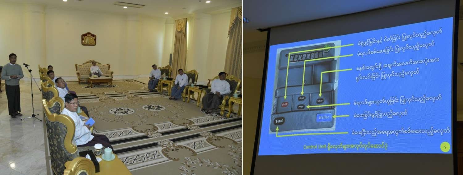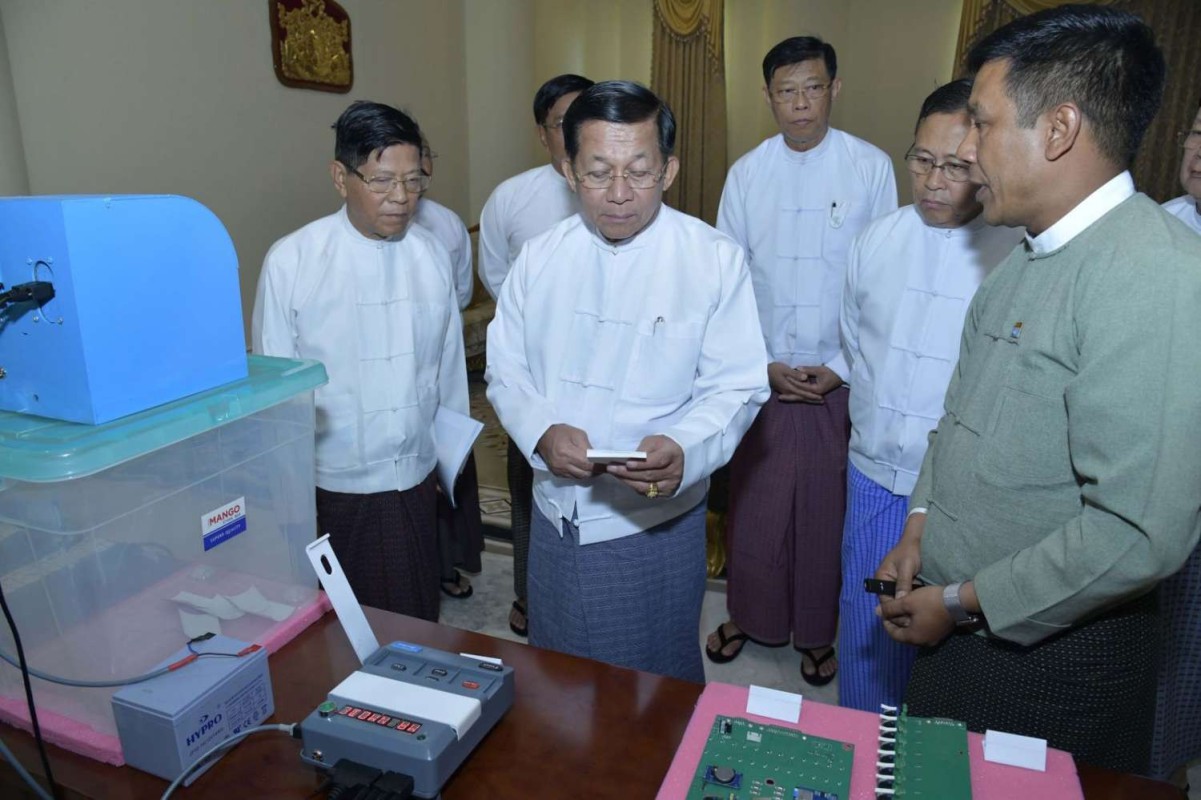 The UEC explained the Myanmar Electronic Voting Machine (MEVM), including functions of the Control Unit, Balloting Unit-Main, Extension), Verification Unit, and other related structures and functions to Senior General Min Aung Hlaing on February 8.