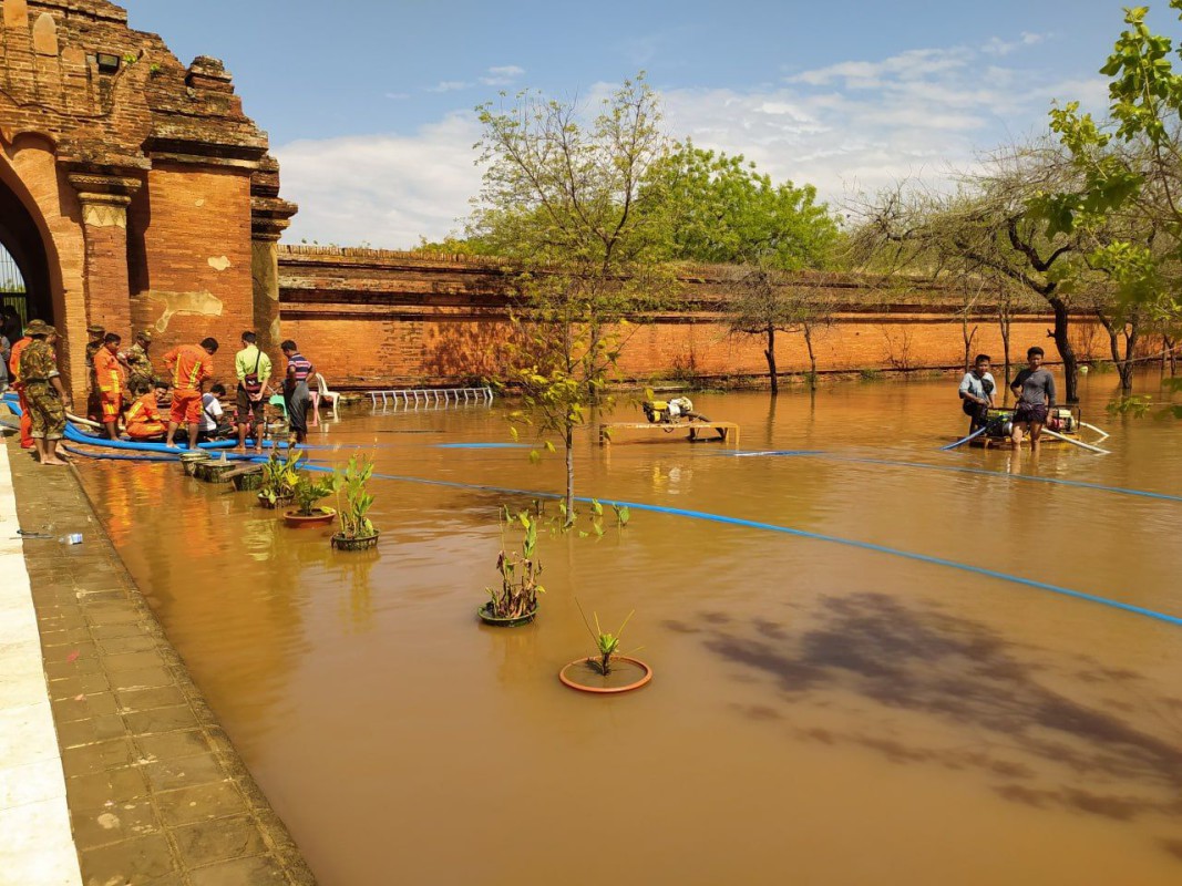 လက်ရှိတွင် ရေအမြန်ပြန်ကျရန် ဆောင်ရွက်လျက်ရှိပြီး မိုးရွာသွန်းမှုကြောင့် ဘုရားများအတွင်း ရေဝင်ရောက်မှုများနှင့် ထိခိုက်မှု အနည်းငယ်သာရှိခဲ့ကြောင်း ၎င်းမှ ဆက်လက်ပြောဆိုထားသည်။