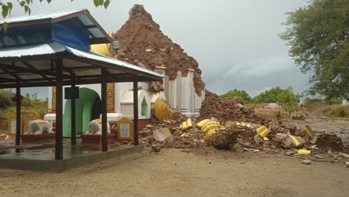 မိုးသည်းထန်စွာရွာသွန်းမှုကြောင့် ပုဂံယဥ်ကျေးမှုနယ်မြေအပြင် ညောင်ဦးမြို့နယ်အတွင်းရှိ ရွှေဘုံသာဘုရား၏ သပိတ်တော်မှော်ရစ်အထက်ပိုင်းပြိုကျကာ မြေခပျက်စီးခဲ့ကြောင်း ၎င်းမှ ဆက်လက်ပြောဆိုခဲ့သည်။