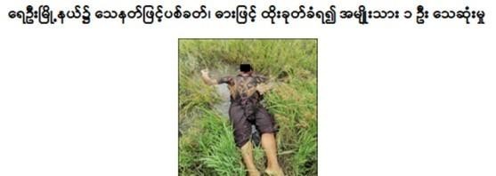 ေရဦးၿမိဳ႕နယ္ရွိ ၿမိဳ႕နယ္စိုက္ပ်ိဳးေရးဦးစီးဌာနပိုင္ စပါးခင္းအတြင္း၌ အမ်ိဳးသား(၁)ဦးကို PDF အဖြဲ႕က လုပ္ႀကံသတ္ျဖတ္ခဲ့ဟု ရဲတပ္ဖြဲ႕ဆို