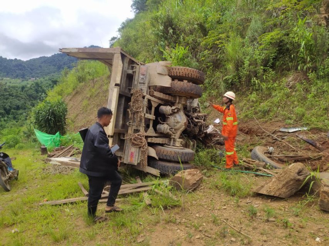 ၎ကားလမ္းမႀကီးေပၚတြင္ FORLAND အျဖဴေရာင္ယာဥ္သည္ ဘရိတ္ရႉးေပါက္၍ ယာဥ္တိမ္းေမွာက္ခဲ့ျခင္းေၾကာင့္ လဟယ္ၿမိဳ႕နယ္မီးသတ္စခန္းမွ သြားေရာက္ကူညီခဲ့ေၾကာင္း သိရသည္။