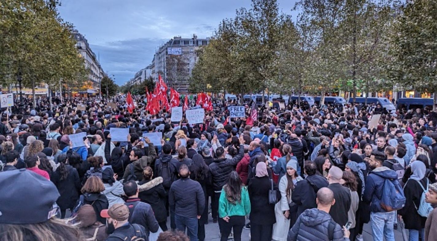 ဟားမတ်စ်တို့က အစ္စရေးကို တိုက်ခိုက်ပြီးနောက် ပါလက်စတိုင်းလိုလားသူတို့ ဆန္ဒပြပွဲများအပေါ် ပိတ်ပင်ထားခြင်းကို ကြာသပတေးနေ့ (အောက်တိုဘာလ ၁၉ ရက်)မှာ ပြင်သစ်တရားရုံးတော်က ဆိုင်းငံ့လိုက်ပါတယ်။ အဲဒီနောက် ပါရီမြို့တော် အချက်အချာနေရာမှာ ပါလက်စတိုင်းလိုလားသူတို့က သောင်းချီစုဝေးပြီး ကန့်ကွက်ဆန္ဒပြခဲ့ကြတယ်လို့ AFP က ယမန်နေ့ (အောက်တိုဘာလ ၂ဝ ရက်)မှာ ရေးသားပါတယ်။