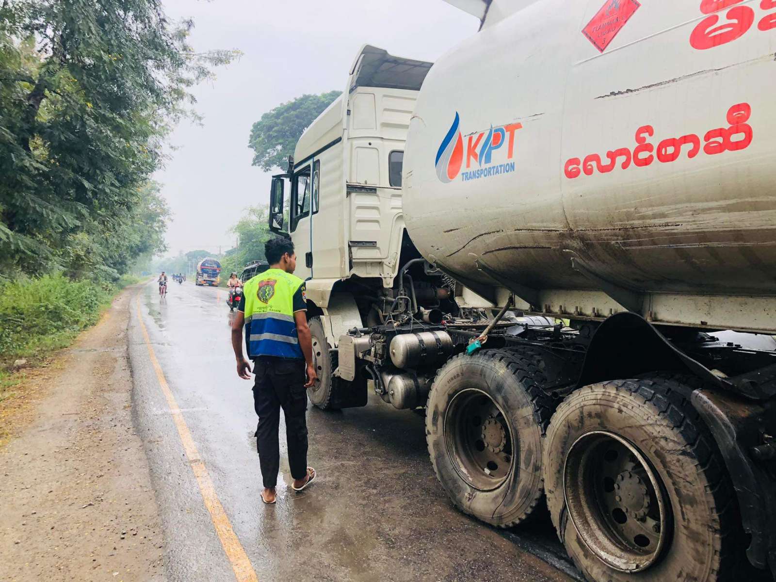 ရှေ့မှကားကို ကျော်တက်သည့် တွဲကားက တစ်ဖက်ယာဉ်ကြောရှိ ဆီဘောက်ဆာကားကို ဝင်တိုက်မိခဲ့မှု မတ္တရာမြို့တွင်ဖြစ်ပွား