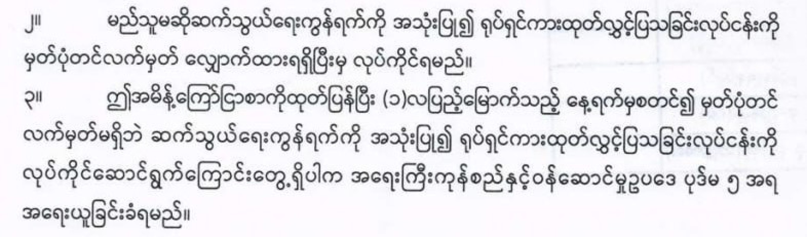 မွတ္ပုံတင္လက္မွတ္လိုင္စင္မရွိဘဲ ဆက္သြယ္ေရးကြန္ရက္ကို အသုံးျပဳၿပီး ႐ုပ္ရွင္ကားထုတ္လႊင့္ ျပသျခင္းကို ေဆာင္႐ြက္ပါက ေရွ႕လလယ္မွစ၍ ဥပေဒႏွင့္အညီ အေရးယူမည္ျဖစ္ေၾကာင္း သိရသည္။