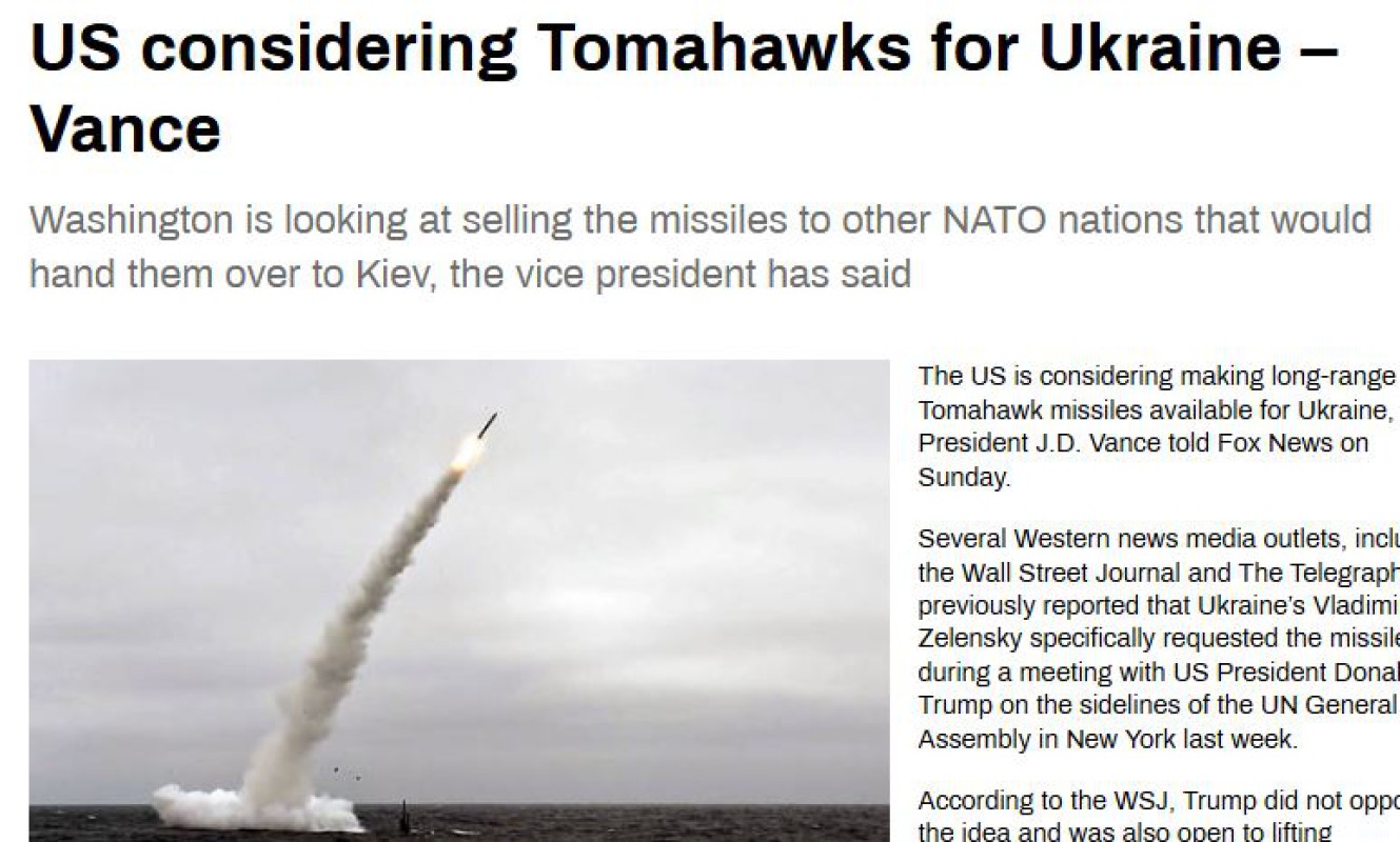 ဒါ့ပြင် ယူကရိန်းကို တာဝေးပစ် Tomahawk ဒုံးကျည်တွေ ထောက်ပံ့ပေးသွားမှာလား၊မပေးဘူးလားဆိုတဲ့ ဆုံးဖြတ်ချက်ကို နောက်ဆုံးမှာချမှတ်သွားမယ်လို့လည်း J.D. Vance က ထုတ်ပြန်ပြောကြားခဲ့ပါတယ်။ စစ်ပွဲကို အဆုံးမသတ်ဘူးဆိုရင် ရုရှားထိပ်တန်းအရာရှိတွေဟာ ဗုံးခိုကျင်းတွေကို ရှာထားသင့်တယ်လို့ ဇီလန်စကီးက ခြိမ်းခြောက်ပြောဆိုခဲ့ပြီးနောက် ရက်ပိုင်းအကြာမှာ ယခုလိုသတင်းတွေ ထွက်ပေါ်လာတာဖြစ်ပါတယ်။