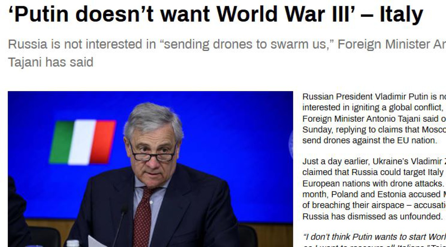 ရုရှားဟာ အီတလီ ဒါမှမဟုတ် အခြားဥရောပနိုင်ငံတွေကို ဒရုန်းတိုက်ခိုက်မှုတွေလုပ်ဆောင်သွားနိုင်တယ်ဆိုတဲ့ ယူကရိန်းသမ္မတဇီလန်စကီးရဲ့ပြောဆိုချက်တွေကို အန်တိုနီယိုတာဂျာနီက ယခုလိုတုံ့ပြန်ပြောဆိုခဲ့တာပဲဖြစ်ပါ တယ်။