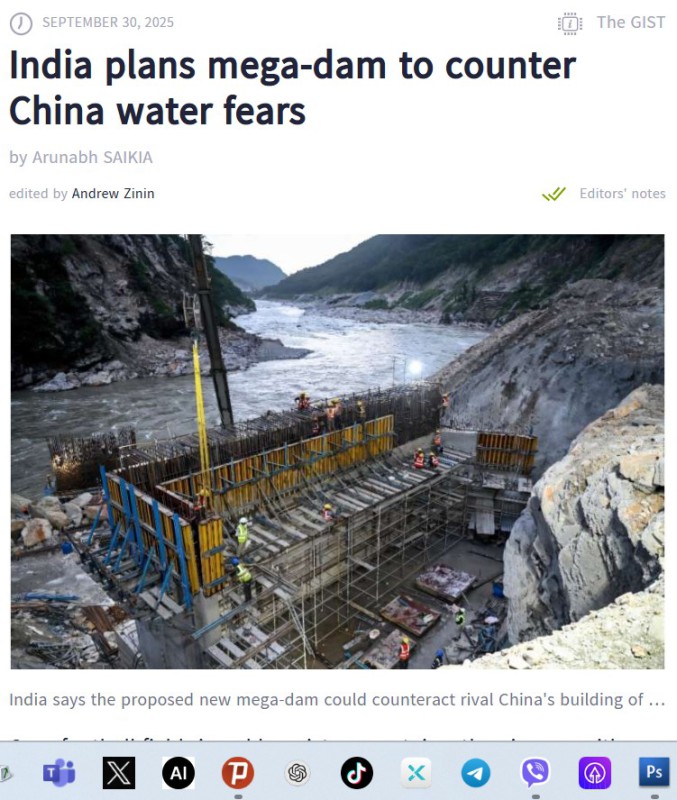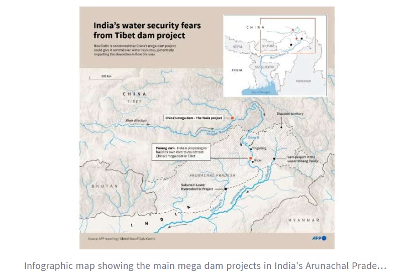 တိဗက်ကိုယ်ပိုင်အုပ်ချုပ်ခွင့်ရဒေသ “ယာလောင်း ရှန်ပို” မြစ်ပေါ်က တရုတ်ရဲ့ ဧရာမ ရေအားလျှပ်စစ်စီမံကိန်း ကို တန်ပြန်ဖို့အတွက် အိန္ဒိယကလည်း သူ့ရဲ့ အရှေ့မြောက်ဘက် အာရူနာချယ်ပရာဒက်ရှ်ပြည်နယ်မှာ အကြီး ဆုံးဆည်ကြီးတစ်ခုကို တည်ဆောက်ရန် စီစဉ်နေတယ်လို့ AFP (1 October 2025) က ရေးပါတယ်။