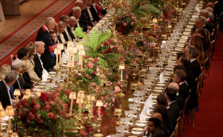 ေဒၚနယ္ထရမ့္ကို အႀကံဉာဏ္ေပးရန္ဆို သည္မွာ ရဲရင့္သူတို႔အတြက္သာျဖစ္သည္။ သို႔ေသာ္ ဘုရင္ခ်ားလ္စ္သည္ ထိုအလုပ္အတြက္ အဆင္သင့္ ျဖစ္ေနသည္။ ႏွစ္ဦးသားသည္ ေတာ္ဝင္ဂုဏ္ျပဳတပ္ဖြဲ႕ ကိုစစ္ေဆးစဥ္တြင္ ဘုရင္ Charles က စစ္သားတစ္ ဦးကို အေမရိကန္သမၼတေရွ႕တြင္ ဓားရွည္ကိုေ႐ႊ႕ လိုက္ခ်ိန္၌ " ဓားကိုသတိထား " ဟုေျပာၾကားခဲ့သည္။ သမိုင္းတြင္ အႀကီးမားဆုံး ေတာ္ဝင္ဂုဏ္ျပဳႀကိဳဆိုပြဲ က်င္းပေနခ်ိန္တြင္ ၿဗိတိန္ဝန္ႀကီးခ်ဳပ္ ဆာကီယာ စတာမားကမူ အျခားအရာတစ္ခုကိုသာ အာ႐ုံစိုက္ေန ခဲ့သည္။ သူသည္ ႏွစ္ႏိုင္ငံ အထူးဆက္ဆံေရးကို မ်က္စိရွင္ရွင္ၾကည့္ေနခဲ့သည္။