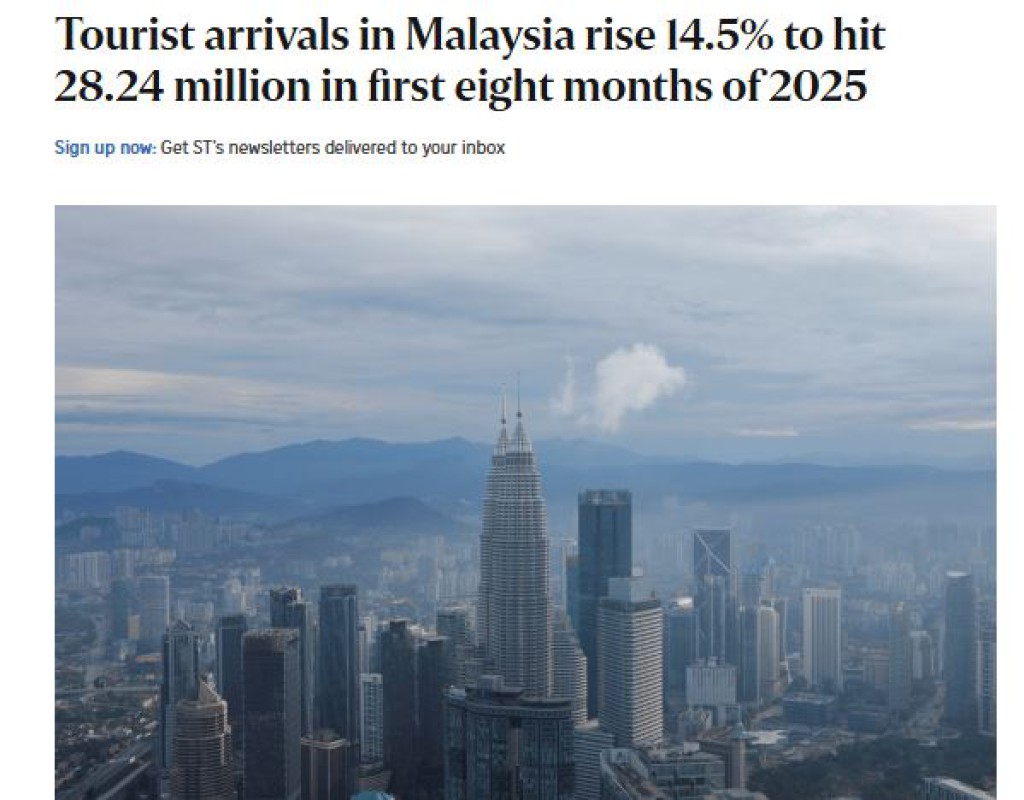 မလေးရှားနိုင်ငံကို နိုင်ငံခြား ခရီးသွားဝင်ရောက်မှု ၂၀၂၅ ခုနှစ် ပထမ ၈ လအတွင်း ၂၈.၂၄ သန်းအထိ တိုးလာ