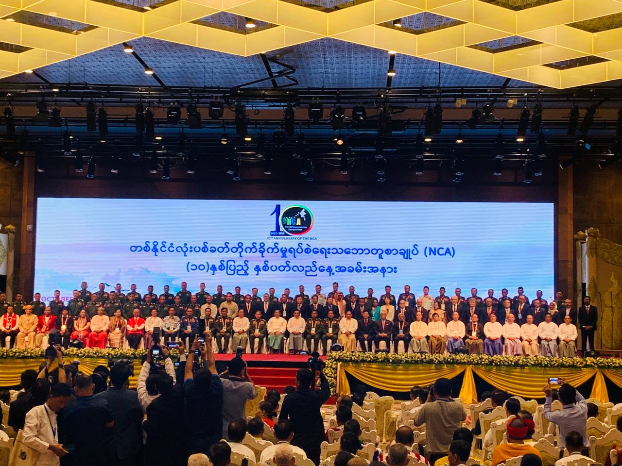 ယနေ့ (အောက်တိုဘာလ ၁၅ ရက်) နေပြည်တော်တွင် ပြုလုပ်သော တစ်နိုင်ငံလုံးပစ်ခတ်တိုက်ခိုက်မှုရပ်စဲရေး သဘောတူစာချုပ် (NCA) (၁၀) နှစ်ပြည့် အခမ်းအနား မြင်ကွင်းများ