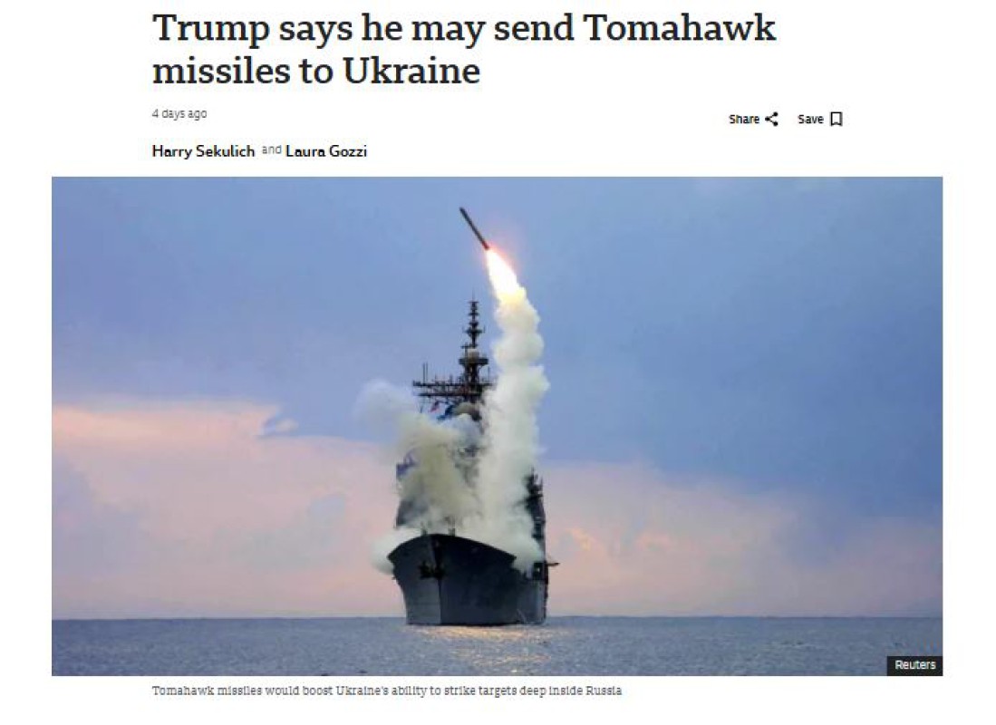 ေဒၚနယ္ထရမ့္က “အေမရိကန္အတြက္လည္း တာေဝးပစ္ Tomahawk ခ႐ုဇ္ဒုံးက်ည္ေတြကို ကြၽန္ေတာ္တို႔ လိုအပ္ပါတယ္။ ကြၽန္ေတာ္တို႔မွာ တာေဝးပစ္ Tomahawk ခ႐ုဇ္ဒုံးက်ည္ေတြ အမ်ားအျပားရွိေပမယ့္ အဲဒါေတြကို ကြၽန္ေတာ္တို႔ လိုအပ္ပါတယ္။ ကြၽန္ေတာ္တို႔ရဲ႕ကိုယ္ပိုင္သိုေလွာင္မႈထဲကေန ထုတ္ေပးဖို႔က မျဖစ္ႏိုင္ပါဘူး” လို႔ ေျပာခဲ့ပါတယ္။