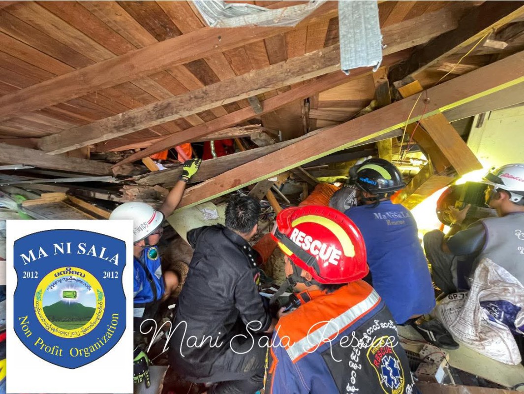 မန္တလေးတိုင်းဒေသကြီး၊ ချမ်းအေးသာစံမြို့နယ်တွင် ငလျင်ဒဏ်သင့်ထားသော တိုက်ဖြိုရာမှ ဘေးအိမ်ပေါ်သို့ ပြိုကျကာ အမျိုးသား(၁)ဦး ပိတ်မိနေကြောင်း သွားရောက်ကူညီနေသော ဒေသခံလူမှုကူညီရေးအသင်းများထံမှ သိရသည်။