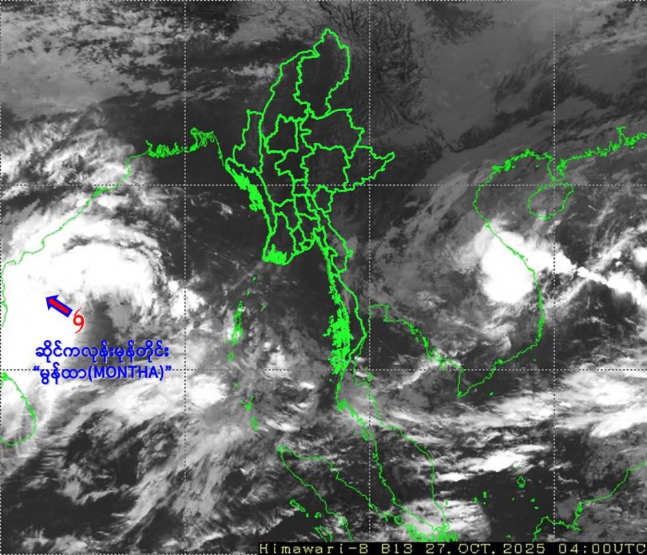ဆိုင်ကလုန်းမုန်တိုင်းအရှိန်ကြောင့် ယနေ့ အောက်တိုဘာ (၂၇)ရက်၊ နံနက်မှ (၂၈)ရက်အတွင်း ရက်နေ့အတွင်း ရန်ကုန်တိုင်းဒေသကြီး၊ ပဲခူးတိုင်းဒေသကြီး၊ ဧရာဝတီတိုင်းဒေသကြီး၊ တနင်္သာရီတိုင်းဒေသကြီး၊ ချင်းပြည်နယ်၊ မွန်ပြည်နယ်နှင့် ရခိုင်ပြည်နယ်တို့တွင် နေရာ ကျဲကျဲမှ နေရာစိပ်စိပ်နှင့် နေပြည်တော်၊ မန္တလေးတိုင်းဒေသကြီး၊ မကွေးတိုင်းဒေသကြီး၊ စစ်ကိုင်းတိုင်းဒေသကြီး၊ ကချင်ပြည်နယ်၊ ကယားပြည်နယ်၊ ကရင်ပြည်နယ်နှင့် ရှမ်း ပြည်နယ်တို့တွင် နေရာကွက်ကျားမှ နေရာကျဲကျဲ မိုးထစ်ချုန်းရွာနိုင်ကြောင်း သိရသည်။