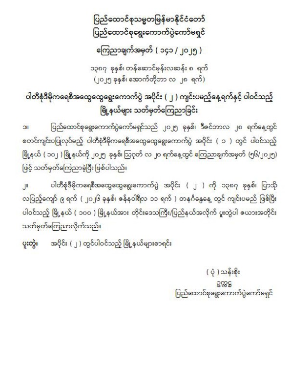 အေထြေထြေ႐ြးေကာက္ပြဲ႕အပိုင္း (၂) တြင္ ခ်င္းျပည္နယ္မွ ၿမိဳ႕နယ္အခ်ိဳ႕ႏွင့္ ရခိုင္ျပည္မွ ၿမိဳ႕နယ္အခ်ိဳ႕ မပါဝင္ေသး ေၾကာင္း သိရသည္။