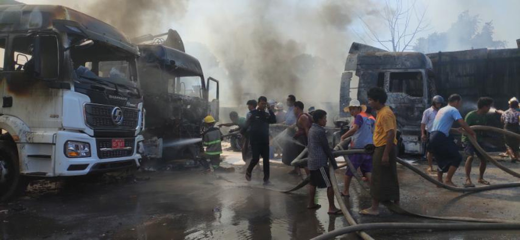 “ကား (၄)စီးနဲ့ ဂိုထောင်တစ်လုံးပျက်စီးသွားတယ်။ ဘာဂိုထောင်လည်းဆိုတာ့ ပစ္စည်းတွေထားတဲ့ ဂိုထောင်ပဲ။ ဆောင်းဘောက်ပစ္စည်း တွေထားတဲ့ ဂိုထောင်ပါ။ အရမ်းအကြီးကြီးတော့မဟုတ်ပါဘူး။ ကားကတော့ တွဲကား (၄) စီးမှာ ခေါင်းပဲကျန်တော့တယ်။ အကုန်လောင် သွားတာ”ဟု အထက်ပါ သတင်းရင်းမြစ်က ဆိုသည်။