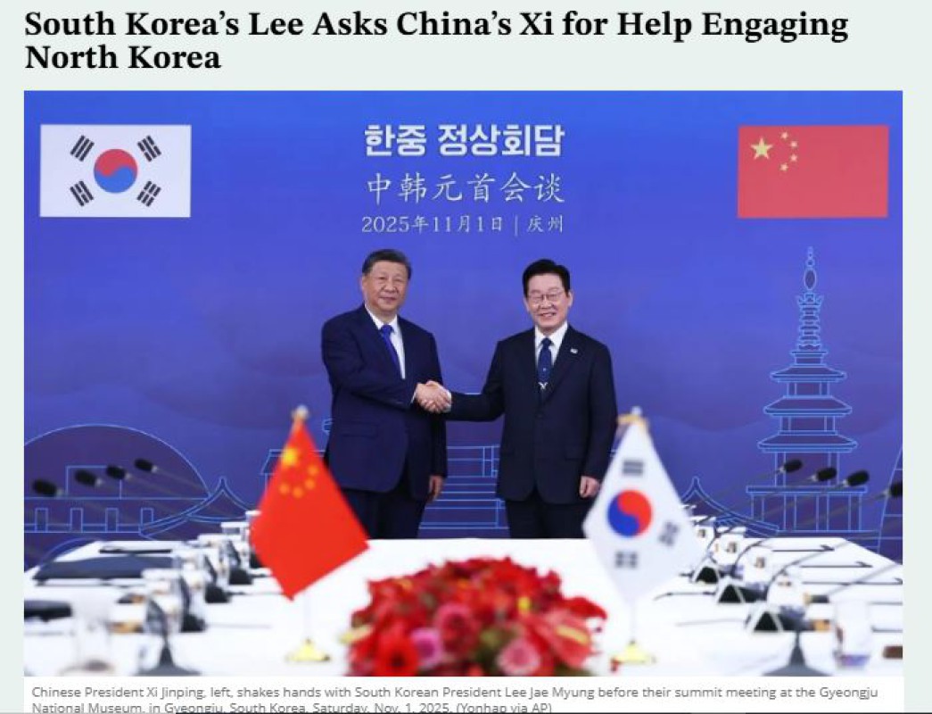 ဒါ့ပြင် အိမ်နီးချင်းမြောက်ကိုရီးယားနိုင်ငံနဲ့ဆွေးနွေးပွဲတွေ ပြန်လည်စတင်ဖို့ ကြိုးပမ်းမှုတွေမှာ တရုတ်က ပါဝင် ကူညီပေးဖို့ လီဂျေးမြောင်က ရှီကျင့်ဖျင်ကို တောင်းဆိုခဲ့တယ်လို့လည်း သိရပါတယ်။ လီဂျေးမြောင်ဟာ အာရှ-ပစိဖိတ်စီးပွားရေးပူးပေါင်းဆောင်ရွက်မှုဖိုရမ်အပြီးမှာ ရှီကျင့်ဖျင်နဲ့တွေ့ဆုံခဲ့ပြီး ညစာစားပွဲကျင်းပခဲ့တာဖြစ်တယ်လို့ လည်း သိရပါတယ်။