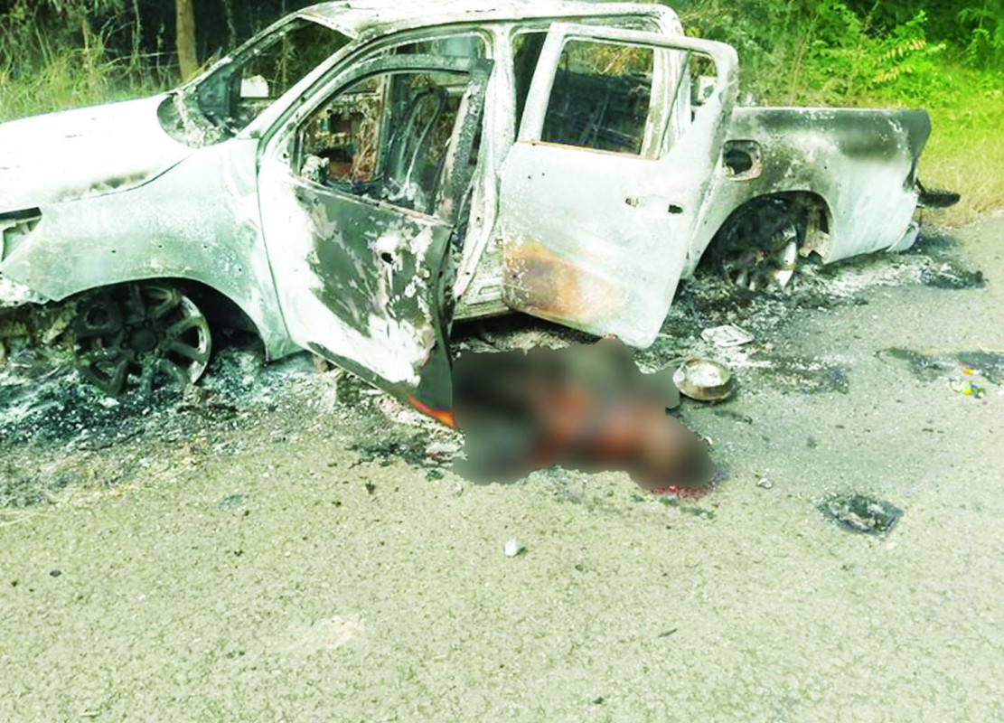 ထိုသို့မောင်းနှင်လာစဉ် ပါးပွတ်ကျေးရွာလမ်းပေါက်အနီးသို့အရောက်၌ PDF အဖွဲ့ဝင်များမက မိုင်းဆွဲတိုက်ခဲ့ရာ မိုင်းပေါက်ကွဲမှုကြောင့် မော်တော်ယာဉ် မီးလောင်သွားခဲ့ပြီး ယာဉ်ပေါ်ပါ အရပ်သားပြည်သူ အမျိုးသား နှစ်ဦးမှာ မီးလောင်သေဆုံးခဲ့ကြောင်း သိရသည်။