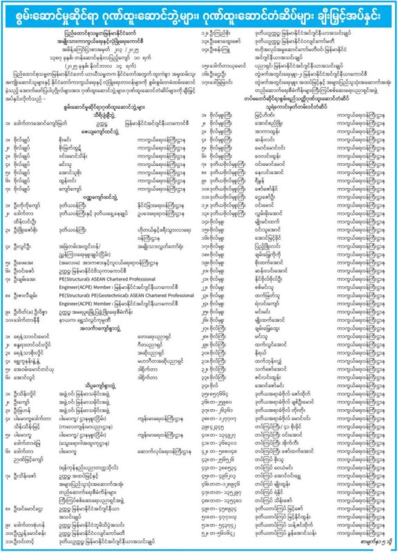 ထို႔ျပင္ သိပၸံပညာ၊ ကုန္ကူးသန္းေရာင္းဝယ္ေရး ႏွင့္ စက္မႈလက္မႈပညာရပ္မ်ားတြင္ ထူးကဲေကာင္းမြန္စြာ ေဆာင္႐ြက္သည့္အတြက္ ခ်ီးျမႇင့္ေသာ သိပၸေက်ာ္စြာဘြဲ႕ကို ျမန္မာသမိုင္းအဖြဲ႕ဝင္ ဦးျမဟန္ အပါအဝင္ (၁၇)ဦးရရွိခဲ့ေၾကာင္း သိရသည္။