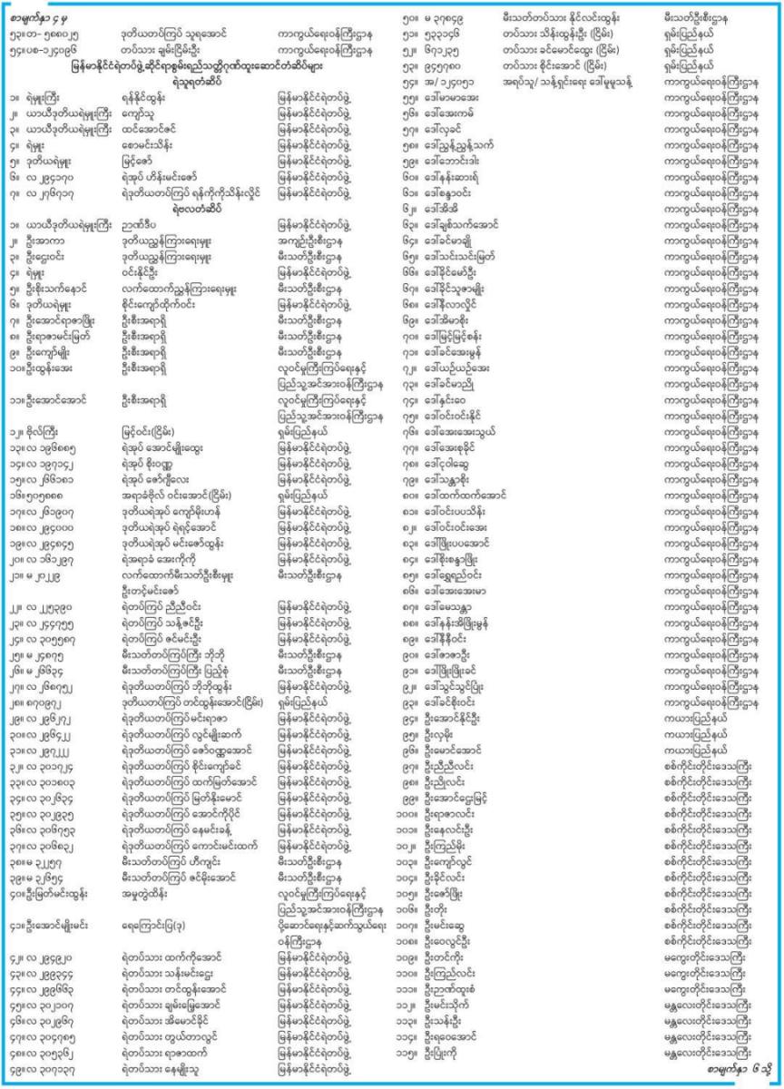 ႏိုင္ငံေတာ္လုံၿခဳံေရးႏွင့္ ေအးခ်မ္းသာယာေရးေကာ္မရွင္ဥကၠ႒ ဗိုလ္ခ်ဳပ္မႉးႀကီးက ႏိုင္ငံေတာ္အတြက္ အမႈထမ္းသူ၊ အက်ိဳးေဆာင္သူမ်ား၊ ႏိုင္ငံေတာ္ကာကြယ္ေရးႏွင့္လုံၿခဳံေရးတာဝန္မ်ားကို စြမ္းစြမ္းတမံထမ္းေဆာင္ခဲ့သူ (၅၃၀)ေက်ာ္ကို စြမ္းေဆာင္မႈဆိုင္ရာဂုဏ္ထူးေဆာင္ဘြဲ႕မ်ား၊ ဂုဏ္ထူးေဆာင္တံဆိပ္မ်ား ခ်ီးျမႇင့္အပ္ႏွင္းခဲ့ေၾကာင္း ယေန႔ ႏိုဝင္ဘာ ၁၄ ရက္ထုတ္ ႏိုင္ငံပိုင္သတင္းစာတြင္ ထုတ္ျပန္ထားသည္။