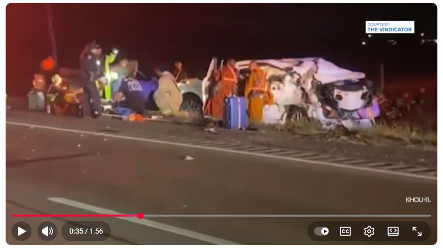 အမေရိကန်နိုင်ငံနဲ့ ကမ္ဘာတစ်ဝှမ်းလုံး "ငြိမ်းချမ်းရေးအတွက် ခရီးရှည်လမ်းလျှောက်ပွဲ" မှာ ပါဝင်လျက်ရှိတဲ့ ဗုဒ္ဓ ဘာသာရဟန်းတော်များဟာ ၂၀၂၅ ခုနှစ်၊ နိုဝင်ဘာလ ၁၉ ရက်၊ ဗုဒ္ဓဟူးနေ့ (မြန်မာစံတော်ချိန် နိုဝင်လာ ၂၀-ရက် ကြာသပတေးနေ့) ညနေပိုင်း တက္ကဆက်ပြည်နယ်၊ ဒေတန်မြို့အနီးမှာ မော်တော်ယာဉ်တိုက်မှုကြောင့် ၂-ပါး ဒဏ်ရာရရှိခဲ့တယ်လို့ ဒေသတွင်း မီဒီယာများက သတင်းလွှင့်တင်နေကြပါတယ်။