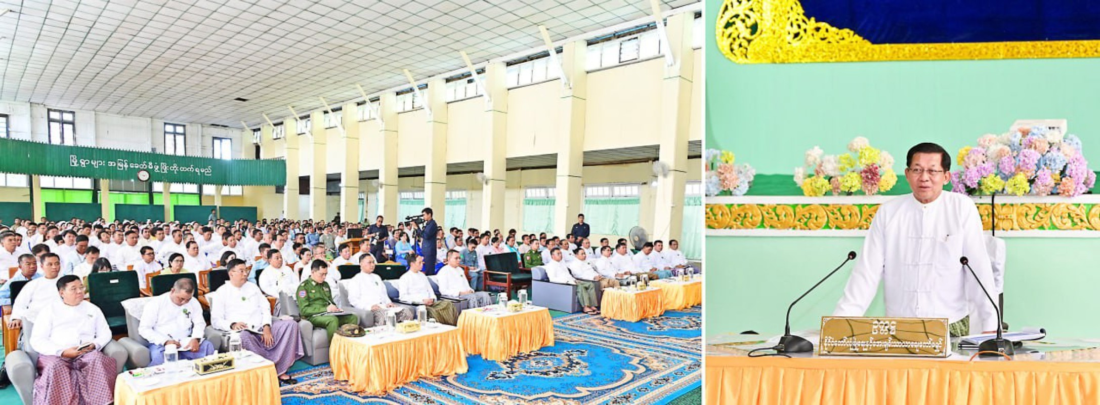 ဗိုလ္ခ်ဳပ္မႉးႀကီး မင္းေအာင္လႈိင္က ယမန္ေန႔ (ႏိုဝင္ဘာ ၂၃ရက္)၊ မြန္းလြဲပိုင္းက ဧရာဝတီတိုင္းေဒသႀကီး၊ မအူပင္ၿမိဳ႕ရွိ ခ႐ိုင္၊ ၿမိဳ႕နယ္ အဆင့္ ဌာနဆိုင္ရာတာဝန္ရွိသူမ်ား၊ ၿမိဳ႕မိ ၿမိဳ႕ဖမ်ားအား တိုးေ႐ႊဝါခန္းမ၌ ေတြ႕ဆုံ၍ ေဒသဖြံ႕ၿဖိဳးတိုးတက္ေရးဆိုင္ရာမ်ား ေဆြးေႏြး ေျပာၾကားစဥ္ အထက္ပါကဲ့သို႔ ေျပာၾကားခဲ့ေၾကာင္း သိရသည္။