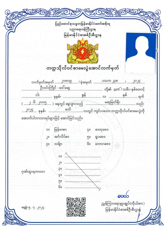 မြန်မာနိုင်ငံစာစစ်ဦးစီးဌာနသည် ၂၀၂၄ ခုနှစ်၊ တက္ကသိုလ်ဝင်စာမေးပွဲ အောင်လက်မှတ်များမှစတင်၍ အောင်လက်မှတ်ပါ အချက်အလက်များကို စစ်ဆေးနိုင်သော QR Code ထည့်သွင်း၍ ထုတ်ပေးခဲ့ကြောင်း သိရသည်။