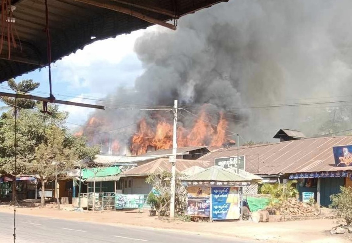 ပုံစာ။ ။ ဆီဆိုင်မြို့တွင် တိုက်ပွဲဖြစ်ပွားစဉ်က တွေ့ရပုံ