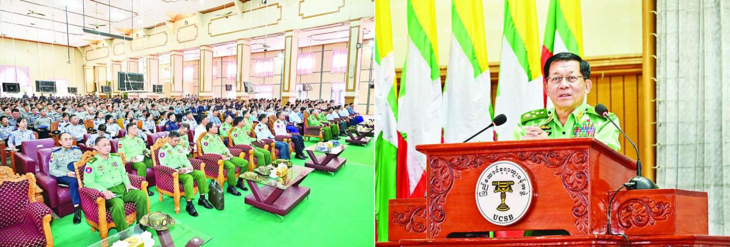 ထို႔ေၾကာင့္ ျပည္တြင္း၌ လိုအပ္လ်က္ရွိသည့္ ထုတ္ကုန္ပစၥည္းမ်ားကို လုံေလာက္စြာထုတ္လုပ္ၿပီး ပိုလွ်ံသည့္ ထုတ္ကုန္မ်ားကို ျပည္ပသို႔တင္ပို႔ႏိုင္မည္ဆိုပါက ႏိုင္ငံအတြက္ မ်ားစြာအက်ိဳးျဖစ္ထြန္းေစမည္ျဖစ္ေၾကာင္း ဗိုလ္ခ်ဳပ္မႉးႀကီးမင္းေအာင္လႈိင္က ေျပာၾကားခဲ့သည္။