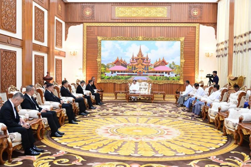 ယာယီသမၼတ ႏိုင္ငံေတာ္လုံၿခဳံေရးႏွင့္ ေအးခ်မ္းသာယာေရးေကာ္မရွင္ ဥကၠ႒ ဗိုလ္ခ်ဳပ္မႉးႀကီး မင္းေအာင္လႈိင္ ထံ ထိုင္းႏိုင္ငံ၊ ႏိုင္ငံျခားေရးဝန္ႀကီး H.E. Mr.Sihasak Phuangketkeow ဦးေဆာင္သည့္ ကိုယ္စားလွယ္အဖြဲ႕က မြန္းလြဲပိုင္းတြင္ ေနျပည္ေတာ္ရွိ ဘုရင့္ေနာင္ရိပ္သာဧည့္ခန္းမ၌ လာေရာက္ဂါရဝျပဳေတြ႕ဆုံခဲ့ျခင္းျဖစ္သည္။
