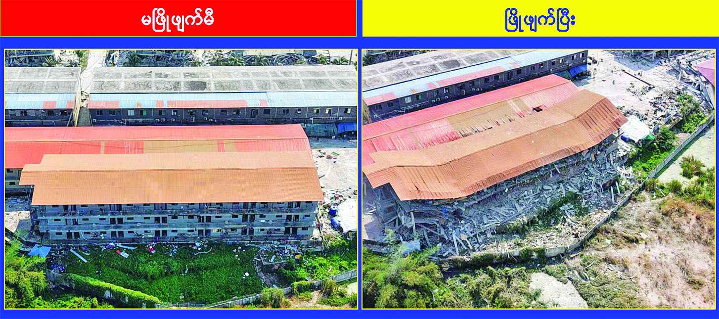 အဆိုပါ ေနရာတြင္လည္း သုံးထပ္အေဆာက္အအုံ ႏွစ္လုံး၊ တစ္ထပ္အေဆာက္အအုံတစ္လုံးကို ထပ္မံၿဖိဳခ်ဖ်က္ဆီး ႏိုင္ခဲ့သျဖင့္ အေဆာက္အအုံအားလုံး ၿဖိဳခ်ဖ်က္ဆီးၿပီးျဖစ္ေၾကာင္း သိရသည္။
