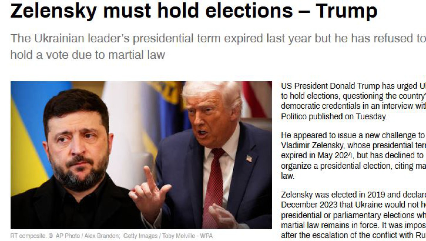 ဒါ့ပြင် ယူကရိန်းက ရွေးကောက်ပွဲကျင်းပဖို့ အချိန်တန်ပြီဖြစ်ကြောင်းနဲ့ ယူကရိန်းနိုင်ငံသားတွေအားလုံးက အဲဒီလိုမျိုး ရွေးချယ်မှုရသင့်တယ်လို့လည်း ဒေါ်နယ်ထရမ့်က ပြောကြားခဲ့ပါတယ်။