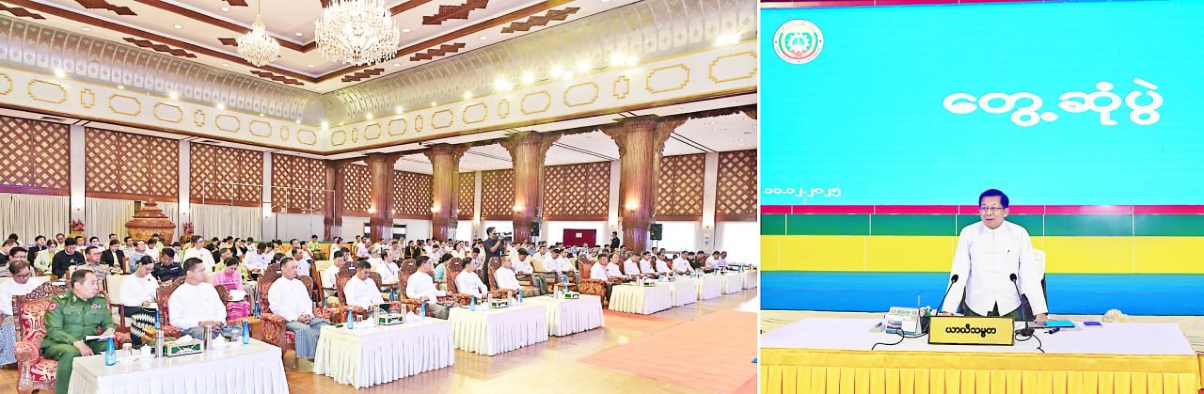 ယာယီသမ္မတ နိုင်ငံတော်လုံခြုံရေးနှင့်အေးချမ်းသာယာရေးကော်မရှင်ဥက္ကဋ္ဌ ဗိုလ်ချုပ်မှူးကြီး မင်းအောင်လှိုင်က ရန်ကုန်မြို့ရှိ တိုင်းဒေသကြီး အစိုးရအဖွဲ့ရုံး မင်္ဂလာခန်းမ၌ ရန်ကုန်တိုင်းဒေသကြီးအစိုးရအဖွဲ့ဝင်များ၊ တိုင်းဒေသကြီးနှင့် ခရိုင်အဆင့်ဌာနဆိုင်ရာ တာဝန်ရှိသူများအား ဒေသဖွံ့ဖြိုး တိုးတက်ရေးဆိုင်ရာများ ဆွေးနွေးပြောကြားစဉ် အထက်ပါကဲ့သို့ထည့်သွင်းပြောကြားခဲ့ခြင်းဖြစ်ကြောင်း သိရသည်။