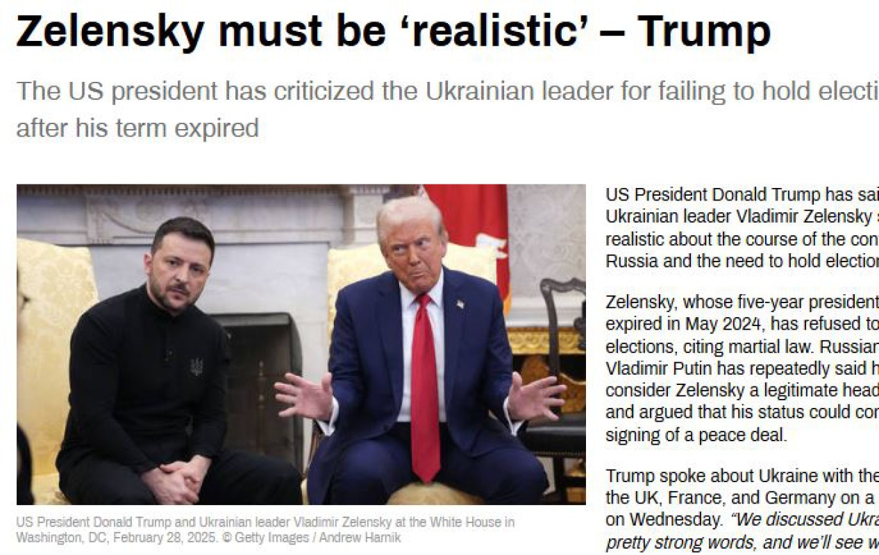 ရုရှားနှင့်ဖြစ်ပွားနေသောပဋိပက္ခဖြစ်စဉ်များအကြောင်းနှင့် ရွေးကောက်ပွဲများ ကျင်းပရန် လိုအပ်ချက်ကို ယူကရိန်း သမ္မတဇီလန်စကီးက လက်တွေ့ဆန်သင့်ကြောင်း အမေရိကန်သမ္မတဒေါ်နယ်ထရမ့်က ဝေဖန်ပြောဆိုခဲ့သည်။ ဇီလန်စကီး၏ သမ္မတသက်တမ်းသည် (၂၀၂၄)ခုနှစ် မေလတွင် ကုန်ဆုံးသွားခဲ့ပြီဖြစ်သော်လည်း စစ်အုပ်ချုပ်ရေး ဥပဒေပြဌာန်းထားမှုကို ကိုးကားပြီး ရွေးကောက်ပွဲအသစ်များကျင်းပရန် တောင်းဆိုမှုများကို ဇီလန်စကီးက ငြင်းပယ်ခဲ့ခြင်းဖြစ်ကြောင်း သိရသည်။