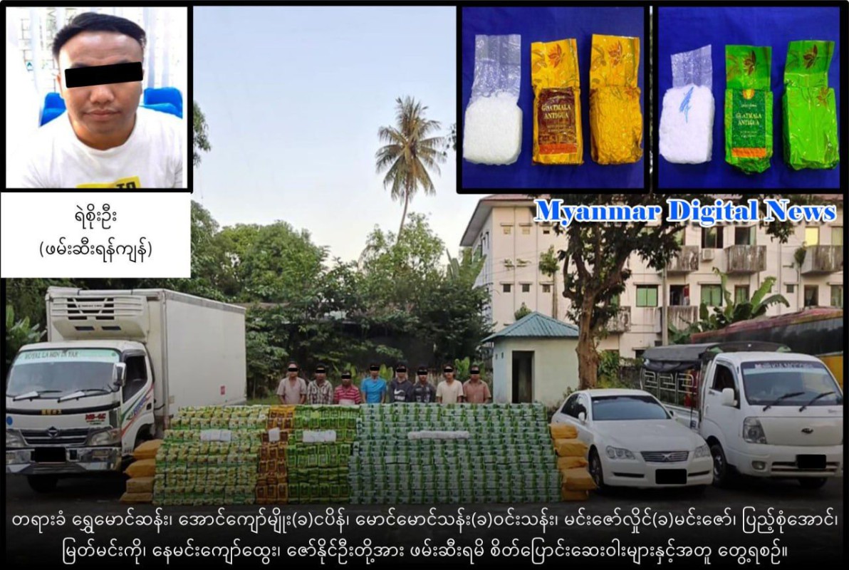 မေလးရွားႏွင့္ ထိုင္းသို႔ ေရေၾကာင္းျဖင့္ ပို႔ေဆာင္မည့္ ေငြက်ပ္ (၁၃၃)ဘီလ်ံ ေက်ာ္တန္ဖိုးရွိ မူးယစ္ေဆးဝါးမ်ားႏွင့္အတူ အမ်ိဳးသား (၁၂)ဦး ဖမ္းမိ