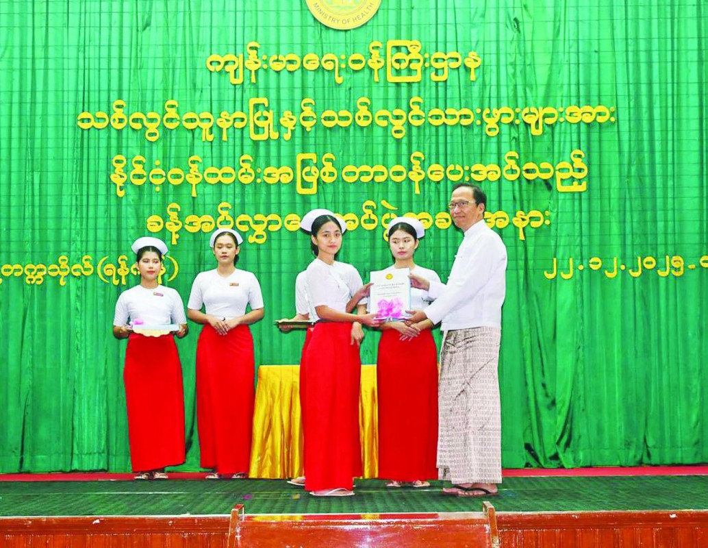 ထို့နောက် နေပြည်တော် သူနာပြု၊ သားဖွားသင်တန်းကျောင်းမှ တက်ရောက်အောင်မြင်သူ သစ်လွင်သူနာပြု ၈၆ ဦး၊ ရန်ကုန်တိုင်းဒေသကြီးအတွင်းရှိ သူနာပြု၊ သားဖွားသင်တန်းကျောင်းများမှ တက်ရောက်အောင်မြင်သူ သစ်လွင်သူနာပြု ၃၄၀၊ ရန်ကုန်ဗဟိုသားဖွား သင်တန်းကျောင်းမှ တက်ရောက်အောင်မြင်သူ သစ်လွင်သားဖွား ၁၆၂ ဦး စုစုပေါင်း ၅၈၈ ဦးကိုယ်စား သစ်လွင်သူနာပြုနှစ်ဦး၊ သစ်လွင်သားဖွား တစ်ဦးတို့ထံ ခန့်အပ်တာဝန်ပေးအပ်သည့် ဌာနဆိုင်ရာအမိန့်စာများပေးအပ်ခဲ့ကြောင်း သိရသည်။