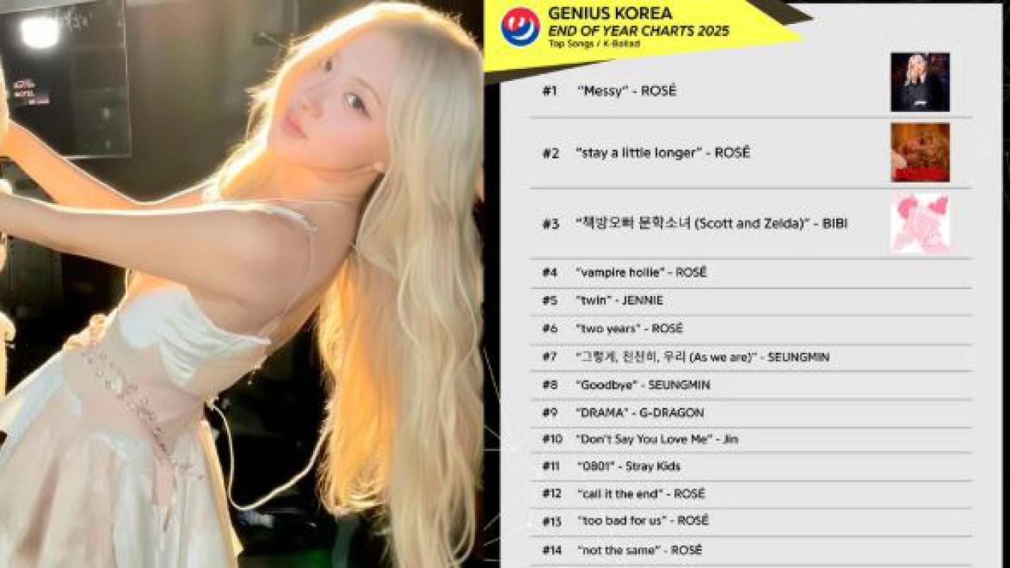 ေတာင္ကိုရီးယားနာမည္ေက်ာ္ အမ်ိဳးသမီးအဆို ေတာ္အဖြဲ႕ BLACKPINK ၏အဖြဲ႕ဝင္တစ္ဦးျဖစ္သူ ႐ို႕စ္သည္ ကမာၻလုံးဆိုင္ရာစံခ်ိန္မွတ္တမ္းမ်ားကိုရရွိခဲ့သလို ဂီတပလက္ေဖာင္းမ်ားစြာ၏ ႏွစ္ကုန္ဇယားတြင္ ထိပ္ဆုံးေနရာ၌ ဆက္လက္ရပ္တည္လ်က္ရွိေၾကာင္း သိရသည္။ ႐ို႕စ္သည္ Genius Korea 2025 ႏွစ္ကုန္စာရင္းတြင္ သီခ်င္းအမ်ား ဆုံးပါရွိသည့္ K-pop အဆိုေတာ္တစ္ဦးအျဖစ္ သတ္မွတ္ခံခဲ့ရျခင္း ျဖစ္ေၾကာင္းသိရသည္။ Genius Korea 2025 ႏွစ္ ကုန္စာရင္းတြင္ပါရွိခဲ့သည့္ ႐ို႕စ္၏သီခ်င္းမ်ားမွာ “Messy”၊ “stay a little longer”၊ “vampire hollie”၊ “two years”၊ “call it the end”၊ “too bad for us” ႏွင့္ “not the same” သီခ်င္းတို႔ျဖစ္ ေၾကာင္းသိရသည္။ အဆိုပါ သီခ်င္း(၇) ပုဒ္ထဲတြင္ ႐ို႕စ္၏ေအာင္ျမင္မႈအမ်ားဆုံးရရွိခဲ့ေသာ သီခ်င္းႏွစ္ ပုဒ္ျဖစ္သည့္ “Messy” ႏွင့္ “stay a little longer” သီခ်င္းတို႔သည္ Genius Korea 2025 ႏွစ္ကုန္ စာရင္းတြင္ ထိပ္ဆုံး(၂)ေနရာကိုရယူႏိုင္ခဲ့ေၾကာင္း သိရသည္။ ထို႔ျပင္ ႐ို႕စ္၏ ဂီတနယ္ပယ္တြင္ ဆက္လက္ေအာင္ျမင္ေက်ာ္ၾကားမႈမ်ားက ၎ကို တစ္ႏွစ္ တာကာလအတြင္း အေအာင္ျမင္ ဆုံးႏွင့္ သက္ဆိုင္ရာ တစ္ကိုယ္ေတာ္အႏုပညာရွင္မ်ားထဲမွတစ္ဦးျဖစ္လာေစခဲ့ေၾကာင္းလည္းသိရသည္။ ထို႔ျပင္ ႐ို႕စ္ႏွင့္ ဘ႐ူႏို မားစ္တို႔ အတူတကြဖန္တီးခဲ့သည့္ “APT” သီခ်င္းသည္လည္း ဂီတပလက္ေဖာင္းမ်ားစြာတြင္ ေအာင္ ျမင္ေက်ာ္ ၾကားမႈမ်ားစြာကိုရယူႏိုင္ခဲ့ၿပီး ၎တို႔၏ကမာၻလုံးဆိုင္ရာရပ္တည္ခ်က္ကို ပိုမိုခိုင္မာလာေစခဲ့ ေၾကာင္းလည္းသိရသည္။ ႏွစ္ေယာက္စလုံးကလည္း ၎တို႔ အတူတကြသီဆိုထားသည့္ APT သီခ်င္း၏ ေအာင္ျမင္မႈမ်ားႏွင့္ပတ္သက္ၿပီး ဝမ္းသာၾကည္ႏူးမႈမ်ားကို ထုတ္ေဖာ္ေျပာဆိုခဲ့ၾကေၾကာင္းလည္းသိရသည္။