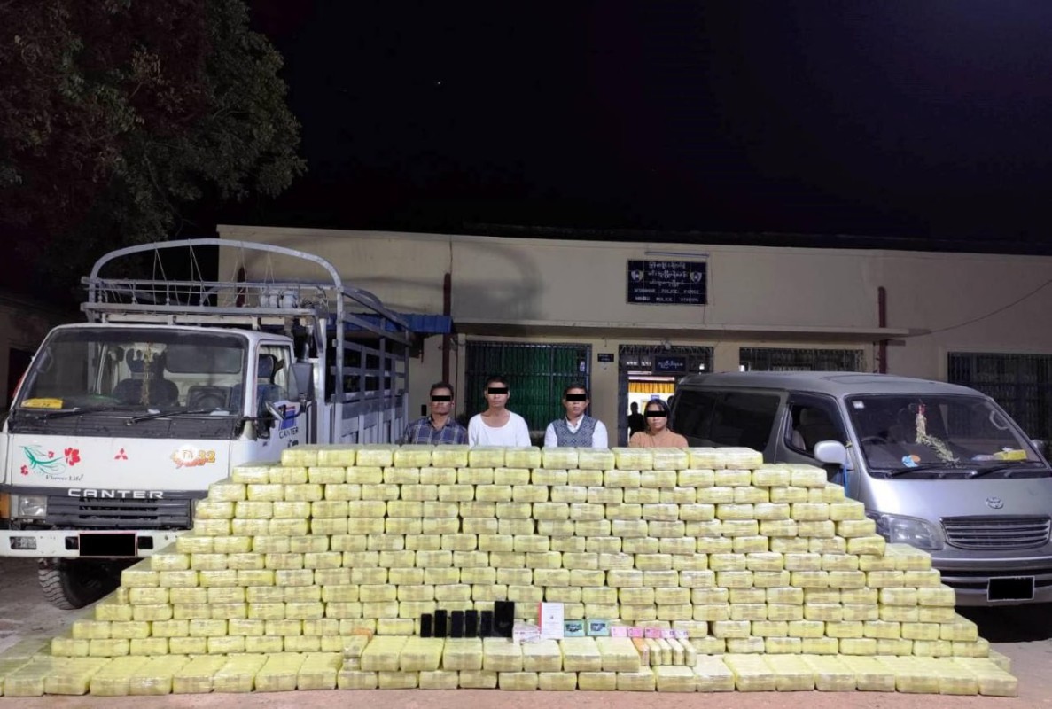 ထိုပြင် စစ်ကိုင်းမြို့မှ မန္တလေးမြိုသို့သယ်ဆောင်၍ နေအိမ်၌ သိုဝှက်ထိန်းသိမ်းထားရှိပြီး မန္တလေးမြို့မှ မင်းတုန်းမြို့သို့ တာဝန်ခံသယ် ဆောင်သည့် နေမျိုးအောင်နှင့် ၎င်း၏ဇနီး မညိုညိုသက်တို့ (၂) ဦးအား မကွေးမြို့ နတ်မောက်လမ်းရှိ မကွေးဟိုတယ်တွင် SUPER CUSTOM ယာဉ် (၁) စီးနှင့်အတူ ဖမ်းဆီးရမိခဲ့ကြောင်း သိရသည်။