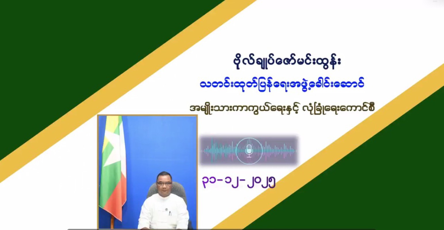 တရုတ်နိုင်ငံ၏ ထိုင်ဝမ်နှင့် ငြိမ်းချမ်းစွာပြန်လည်ပေါင်းစည်းရေး ရည်ရွယ်ချက်ကိုထောက်ခံကြောင်း အမျိုးသားကာကွယ်ရေးနှင့်လုံခြုံရေးကောင်စီ သတင်းထုတ်ပြန်ရေးအဖွဲ့ခေါင်းဆောင် ဗိုလ်ချုပ်ဇော်မင်းထွန်းက ပြောကြားခဲ့ကြောင်း သိရသည်။
