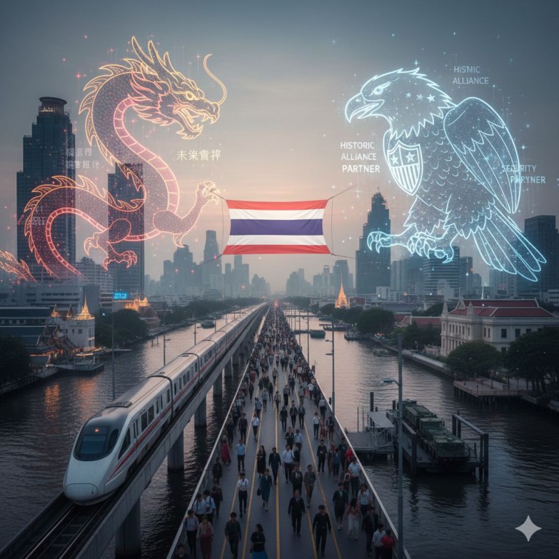 ထိုင်း နိုင်ငံရေးခေါင်းဆောင်ပိုင်းတွေဟာ (စစ်အစိုးရဖြစ်စေ၊ အရပ်သားအစိုးရဖြစ်စေ) နှစ်ပေါင်းများစွာ မဟာဗျူဟာမြောက် မရေရာတဲ့ မူဝါဒကို ကျင့်သုံးခဲ့ကြပါတယ်။ Cobra Gold လိုမျိုး စစ်ရေး လေ့ကျင့်မှုတွေနဲ့ လုံခြုံရေးဆိုင်ရာ ပူးပေါင်း ဆောင်ရွက်မှုတွေမှာတော့ အမေရိကန်နဲ့ မဟာမိတ် ဟောင်းအဖြစ် ဆက်လက်တည်ရှိနေသလို တစ်ဖက် မှာလည်း ဘေဂျင်းရဲ့ Belt and Road စီမံကိန်းတွေ၊ Smart City တွေ၊ လျှပ်စစ်ကားနဲ့ ဆီမီးကွန်ဒက်တာ ရင်းနှီးမြှုပ်နှံမှုတွေအတွက် တံခါးဖွင့်ပေးထားပါတယ်။ နှစ်ဖက်စလုံးနဲ့ ဆက်ဆံရေးကို ထိန်းညှိထားပေမယ့် သိသာထင်ရှားတဲ့ လမ်းကြောင်းတစ်ခုကတော့ စီမံ ကိန်းတစ်ခုဟာ စီးပွားရေးနဲ့ အနာဂတ်ကို ပိုပြီးဦး တည်လေလေ တရုတ်နိုင်ငံရဲ့ ပါဝင်ပတ်သက်မှုက ပိုပြီးအားကောင်းလေလေ ဖြစ်နေတာပဲ ဖြစ်ပါတယ်။
